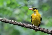 黑枕黄鹂又称黄莺、黄鹂、金衣公子等,是雀形目黄鹂科黄鹂属鸣禽。体长23~27厘米,嘴略下弯,粉色;雄鸟整体主要呈鲜明的黄色,黑色过眼纹在额和枕后相连,且在枕后较粗,形成一围绕头顶的黑色宽带;飞羽黑色,…全部>>