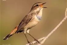 蓝点颏亦称“蓝喉歌鸲”,通称蓝靛颏儿。身体大小和麻雀相似,体长12-13厘米,体重17-18克。头部、上体主要为土褐色。眉纹白色。尾羽黑褐色,基部栗红色。颏部、喉部辉蓝色,下面有黑色横纹。下体白色。…全部>>