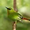 火尾绿鹛是莺科、绿鹛属小型鸟类,体长11-14厘米。上体绿色,头顶至枕具黑色鳞状斑,眼先和眼后黑色,眉纹黄绿色。两翅黑色具黄色和红色翅斑及白色端斑,极为醒目。中央一对尾羽绿色,外侧尾羽鲜红色。…全部>>