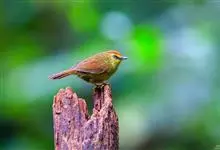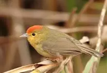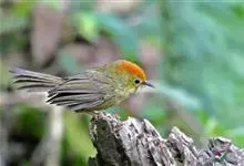 金头穗鹛小型鸟类,体长10~11厘米,是一种黄色小鸟。头顶金黄色有黑色纵纹,眼先黑色,在头、颊和耳羽金黄色的衬托下亦甚醒目。上体橄榄黄色,下体亮黄色,腹和两胁沾绿。…全部>>
