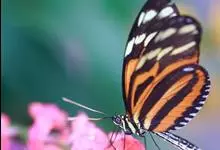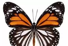 黑脉金斑蝶:翅阔8.6-12.4厘米。雄蝶较雌蝶为大。成年蝶颜色鲜艳,翅膀上有显眼的橙色及黑色斑纹,周围是宽阔的黑色边框,布有许多白色斑点。这种引人注目的着色是对捕食者的视觉警告,表示这个物种有毒;…全部>>