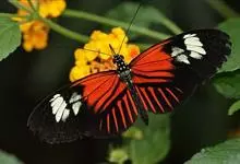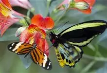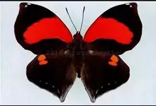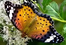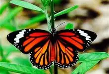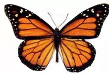 黑脉金斑蝶:翅阔8.6-12.4厘米。雄蝶较雌蝶为大。成年蝶颜色鲜艳,翅膀上有显眼的橙色及黑色斑纹,周围是宽阔的黑色边框,布有许多白色斑点。这种引人注目的着色是对捕食者的视觉警告,表示这个物种有毒;…全部>>