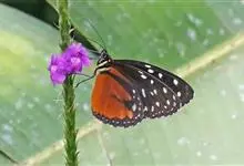 虎斑蝶,Danaus genutia ,是斑蝶属的一种,常见于湿地公园内。雄性虎斑蝶经常伏于吊裙草 上吸食汁液,以制造吸引异性的香气。虎斑蝶翅膀腹面鲜橙色,翅脉和翅边缘黑色,边缘上有两行小白点,…全部>>