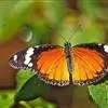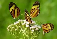 虎斑蝶,Danaus genutia ,是斑蝶属的一种,常见于湿地公园内。雄性虎斑蝶经常伏于吊裙草 上吸食汁液,以制造吸引异性的香气。虎斑蝶翅膀腹面鲜橙色,翅脉和翅边缘黑色,边缘上有两行小白点,…全部>>