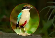 蓝翅八色鸫是雀形目八色鸫科的鸟类。体长17-20厘米,体重类约48-70克,体型圆胖,尾短,腿长,以身体具有红、绿、蓝、白、黑、黄、褐、栗等鲜艳夺目,丰富艳丽的色彩而得名,是很有观赏价值的鸟类。主要…全部>>