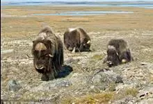 麝牛,是偶蹄目牛科麝牛属哺乳动物。麝牛体型大,但低矮粗壮,头大,吻部宽,眼小;雌雄均具角,四肢短粗,蹄宽大;毛被厚,极耐寒,尾短。雄麝牛在发情时会散发出一种类似麝香的气味,又称麝香牛。…全部>>
