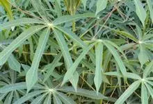 木薯,为大戟科木薯属的一种直立灌木,又名木番薯、树薯。木薯高1.5-3米;块根圆柱状。叶纸质,轮廓近圆形;裂片倒披针形至狭椭圆形;托叶三角状披针形。圆锥花序顶生或腋生,花萼带紫红色且有白粉霜。…全部>>