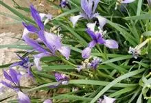 粗根鸢尾是鸢尾科鸢尾属的多年生草本植物。植株基部有大量老叶残留纤维;根尖端渐细,有皱缩横纹;叶为有光泽的深绿色;花茎不伸出地面,花蓝紫或红紫色,外花被裂片窄倒卵形,有紫褐及白色斑纹,…全部>>