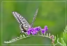 柑橘凤蝶是鳞翅目凤蝶科凤蝶属昆虫,又称柑橘黄凤蝶、花椒凤蝶、燕凤蝶。中型凤蝶。翅底色黑褐色,翅脉黑色,各翅室内具长短不一的黄白色斑;前翅中室具4条近乎平行的黄色线纹,后翅臀区具一枚橘红色的圆斑,…全部>>