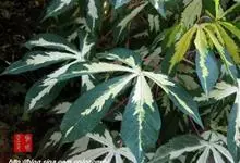 花叶木薯,Manibot esculenta cv.Variegata,大戟科木薯属植物。…全部>>