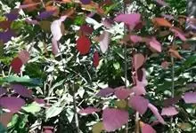 紫锦木是大戟科、大戟属的常绿乔木。叶圆卵形,主脉于两面明显,侧脉数对,边缘全缘,两面红色;花序生于二歧分枝的顶端,总苞阔钟状,裂片呈三角形,边缘具毛,腺体深绿色呈半圆形,…全部>>