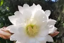 仙人球花 仙人掌科,仙人球属。植株单生或成丛。幼株球形,老株长成圆筒状,高可达75厘米,直径12-15厘米。球体暗绿色,具棱11-12。刺锥状,黑色,长1-1.5厘米。花着生于球体侧方,大型嗽喇叭状…全部>>