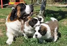 圣伯纳犬,别名巴里汉德,属于大型工作犬,肩高约65~90厘米,体重约50~90千克。圣伯纳犬身体强壮,被毛红褐色和白色相间,头圆而宽大。颈部强壮,胸宽深,背直。前肢长直,腕关节略前倾,后肢腿骨粗壮,…全部>>