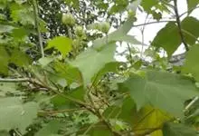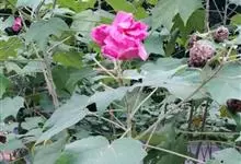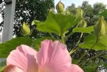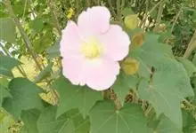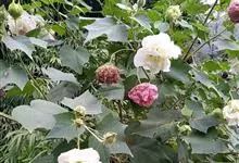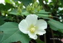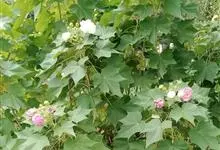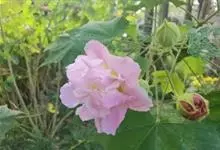 木芙蓉,锦葵科木槿属落叶灌木或小乔木。小枝上有细绒毛;叶片为卵状心形,托叶为披针形,常早落;花单生,花萼为钟形,花冠初为白色或淡红色,后逐渐变为深红色;果实为扁球形,有淡黄色的毛附着。花期8到10月。…全部>>
