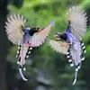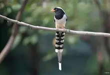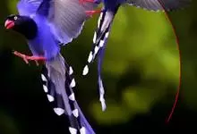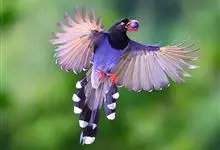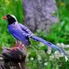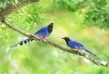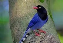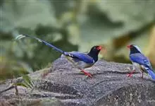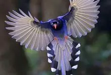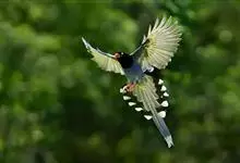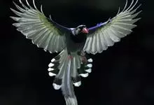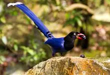 台湾蓝鹊:体长64至65厘米,翼展18至21厘米,尾长约40厘米,尾羽长占了总体长的三分之二。头、脸、颈、喉、胸都是黑色,黄色的眼珠包围黑色的瞳孔,鲜红色的鸟喙、双脚,…全部>>