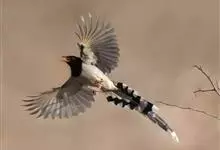 红嘴蓝鹊,别名山鹊、长尾鹊,是鸦科蓝鹊属的一种观赏性较强的大型鸣禽。该物种为体长54~65cm,头、颈、喉和胸黑色,头顶至后颈有一块白色至淡蓝白色或紫灰色块斑,其余上体紫蓝灰色或淡蓝灰褐色。尾长呈凸状,…全部>>