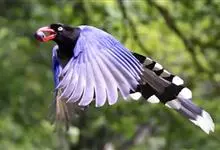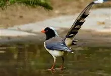 红嘴蓝鹊,别名山鹊、长尾鹊,是鸦科蓝鹊属的一种观赏性较强的大型鸣禽。该物种为体长54~65cm,头、颈、喉和胸黑色,头顶至后颈有一块白色至淡蓝白色或紫灰色块斑,其余上体紫蓝灰色或淡蓝灰褐色。尾长呈凸状,…全部>>