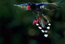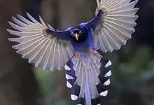 台湾蓝鹊:体长64至65厘米,翼展18至21厘米,尾长约40厘米,尾羽长占了总体长的三分之二。头、脸、颈、喉、胸都是黑色,黄色的眼珠包围黑色的瞳孔,鲜红色的鸟喙、双脚,…全部>>