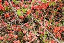 贴梗海棠Nakai)是蔷薇科、木瓜海棠属植物。落叶灌木,高达2米,枝条直立开展,有刺。叶片卵形至椭圆形,稀长椭圆形,长3-9厘米,宽1.5-5厘米。花先叶开放,3-5朵簇生于二年生老枝上。…全部>>