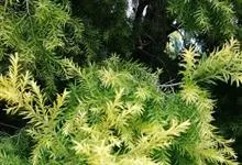 黄金串钱柳是桃金娘科白千层属常绿乔木植物。其树干暗灰色,树皮不易剥落;具油腺点,香味浓郁;叶革质互生,披针形或狭长圆形,两端尖;叶色全年金黄至鹅黄色;枝条细长,柔软且韧性好;穗状花序生于枝顶;花白色,…全部>>