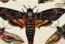 鬼脸天蛾,是鳞翅目天蛾科面形天蛾属动物。成虫翅展100~125毫米,体黑褐色;胸背有骷髅形斑纹;卵圆球形,直径约2毫米,淡黄绿色,表面光滑;老熟幼虫体长70~90毫米,蛹体长约56毫米;前翅为褐色,…全部>>