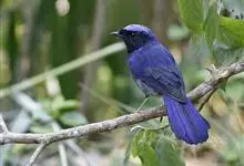 大仙鹟:体重34-38克,体长20-2厘米。是一种体型较大的深色鹟。雄鸟上体蓝色,头顶、颈侧条纹、肩块及腰部辉蓝,下体黑色。雌鸟橄榄褐色,头顶蓝灰,颈侧具闪辉浅蓝色块,喉具皮黄色三角形块斑。…全部>>