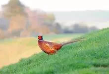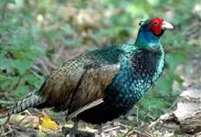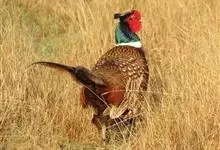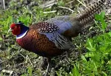 环颈雉是雉科、雉属的一种走禽,共有30个亚种。体重900-1050克,体长53-89厘米。体型较家鸡略小,但尾巴却长得多。雄鸟和雌鸟羽色不同,雄鸟羽色华丽,多具金属反光,…全部>>