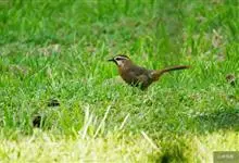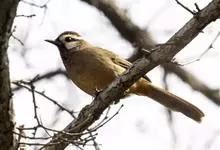 白颊噪鹛是雀形目噪鹛科噪鹛属鸟类,又称土画眉、小画眉、小噪鹃。成鸟额至头顶栗褐色,长眉纹、眼先和颊纹棕白色,眼后至耳羽深褐色,…全部>>