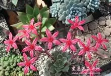 青星美人是景天科厚叶草属的多肉植物。开花时抽生出长长的花梗,簇状花序,红色花朵依次开放,呈倒钟形,串状排列;有短茎,排列为近莲座状;叶片肥厚,呈匙型且较细长,叶缘圆弧状,叶片光滑、有微量白粉,叶色翠绿,…全部>>