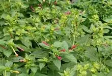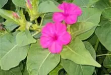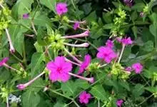 即紫茉莉,英文名:Four-o'clock,Marvel of Peru,为紫茉莉科、紫茉莉属多年生草本植物,一年生栽培。株高50~80cm。根粗壮,茎多分枝而散生。叶对生,卵形或心脏形。花数朵簇生…全部>>