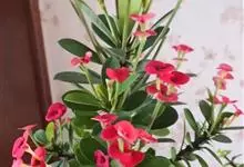 虎刺梅:别称铁海棠,是蔓生灌木植物。茎多分枝,长60-100厘米,直径5-10毫米,具纵棱,密生硬而尖的锥状刺,刺长1-1.5厘米,直径0.5-1.0 毫米,常呈3-5列排列于棱脊上,呈旋转。叶互生…全部>>