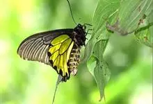 荧光裳凤蝶是凤蝶科裳凤蝶属的一种大型蝴蝶,该物种共有3个亚种。该蝶飞翔的时候姿态优美,前翅黑色,后翅金黄色和黑色交融的斑纹在阳光照射下金光灿灿,显得华贵美丽。幼虫寄主为多种马兜铃属的植物,取食马兜铃…全部>>
