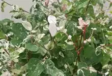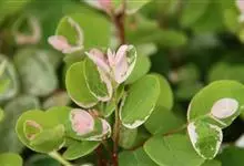 常绿小灌木。株高约50~120厘米,枝条暗红色 。叶互生,圆形或阔卵形,全缘。白色或有白色斑纹。嫩时白色,成熟时绿色带有白斑,老叶绿色。花小,花有红色、橙色、黄白等色,花期、夏秋两季。全部>>