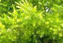 黄金串钱柳是桃金娘科白千层属常绿乔木植物。其树干暗灰色,树皮不易剥落;具油腺点,香味浓郁;叶革质互生,披针形或狭长圆形,两端尖;叶色全年金黄至鹅黄色;枝条细长,柔软且韧性好;穗状花序生于枝顶;花白色,…全部>>