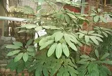 昆士兰伞木,吕松鹅掌柴 ,称昆石兰遮树,澳洲鸭脚木、方式叶鹅掌柴、伞树、大叶伞。叶片阔大,柔软下垂,形似伞状,株形优雅轻盈,易于管理,适于客厅的墙隅与沙发旁边置放,是室内理想的观叶植物。但目前多由…全部>>
