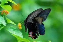 蓝凤蝶,Papilio protenor Cramer,凤蝶科凤蝶属的一种昆虫。翅展95~120mm。翅黑色,有靛蓝色天鹅绒光泽。雄蝶后翅正面前缘有黄白色斑纹,…全部>>