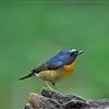 棕胸蓝姬鹟:属小型鸣禽,体长10-13厘米,体重6-10克,是一种体型很小的灰蓝及棕色鹟,雌雄羽色不同,雄鸟羽色艳丽,雌鸟羽色暗淡。雄鸟上体深蓝色,胸橙黄色,下腹灰白色。亚成鸟具褐色斑驳。…全部>>