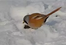 文须雀,别称髭雀、文须山雀,属雀形目、鹆鸟科、画眉亚科。眼先及髭纹黑色,头顶暗灰,后颈至覆尾羽深金黄色。小覆翼羽为灰色,中覆翼羽黑色,大覆翼羽外侧为棕褐色而内侧为黑色。尾呈棕色而中间的一对淡黄,…全部>>