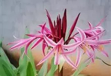 红花文殊兰又名西南文殊兰,拉丁文名Crinum latifolium L.多年生粗壮草本。分布于广西、贵州、云南。常生于河床、沙地。越南至印度及马来西亚也有分布。全部>>