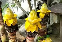 地涌金莲 C. Y. Wu ex H. W. Li)是芭蕉科地涌金莲属多年生丛生草本。地涌金莲徦茎矮小,真茎在开花前短小;叶片长椭圆形;花序直立,生于假茎上,苞片淡黄或黄色;浆果三棱状卵形;种子大,…全部>>