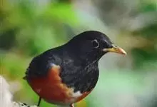 黑胸鸫属中型鸟类,体长20-30厘米。雄鸟整个头、颈、胸黑色,其余上体暗灰色,下体橙棕色,极为醒目。嘴、脚蜡黄色。雌鸟上体橄榄褐色,颏、喉白色,上胸橄榄褐色具黑色斑点,其余与雄鸟相似。…全部>>
