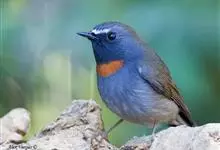 棕胸蓝姬鹟:属小型鸣禽,体长10-13厘米,体重6-10克,是一种体型很小的灰蓝及棕色鹟,雌雄羽色不同,雄鸟羽色艳丽,雌鸟羽色暗淡。雄鸟上体深蓝色,胸橙黄色,下腹灰白色。亚成鸟具褐色斑驳。…全部>>