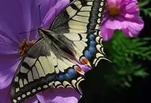 金凤蝶,是鳞翅目凤蝶科凤蝶属动物。金凤蝶为中型凤蝶,翅展70-84毫米,翅背面底色黑褐色,翅脉黑色,翅室具黄斑;前翅背面基部呈暗黄色,亚外缘为黑色,内具一列小黄斑;后翅背面亚外缘区具黑宽边,…全部>>