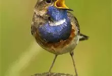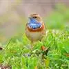 蓝点颏亦称“蓝喉歌鸲”,通称蓝靛颏儿。身体大小和麻雀相似,体长12-13厘米,体重17-18克。头部、上体主要为土褐色。眉纹白色。尾羽黑褐色,基部栗红色。颏部、喉部辉蓝色,下面有黑色横纹。下体白色。…全部>>