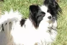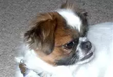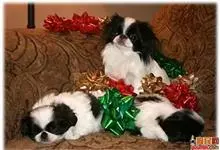 日本狆是极小型犬;被毛长而丰厚,不弯曲;毛色为白色底,带黑色或栗色斑块,斑块颜色越艳越好;斑块以在耳、身、面、尾根左右对称者为佳;头较大而圆,头骨平坦;吻短,鼻尖缩至两眼之间,几乎与眼同齐;眼大而凸出,…全部>>