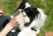 日本狆是极小型犬;被毛长而丰厚,不弯曲;毛色为白色底,带黑色或栗色斑块,斑块颜色越艳越好;斑块以在耳、身、面、尾根左右对称者为佳;头较大而圆,头骨平坦;吻短,鼻尖缩至两眼之间,几乎与眼同齐;眼大而凸出,…全部>>