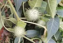 曼陀罗,茄科曼陀罗属一年生大型草本植物,全株光滑。有臭气;叶呈广卯形,边缘具不规则波状浅齿裂;花单生于枝杖间或叶腋,直立,有短梗;花萼是筒状裂片三角形,颜色为白色或淡紫色;果实为蒴果卵状,…全部>>