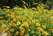 赛菊芋是菊科赛菊芋属多年生草本植物。多分枝;叶对生,长卵圆形,先端圆钝,基部楔形,具长柄,边缘具锯齿,叶面粗糙;头状花序集成伞房状花序;花为黄色;花期夏季;因其外形酷似菊芋,并归类为菊科而得名。…全部>>