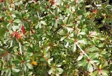 厚皮香 Bedd.)是五列木科、厚皮香属常绿灌木或小乔木,高可达15米,胸径达40厘米,树皮平滑灰褐色,小枝灰褐色。叶革质或薄革质,假轮生状,齿尖具黑色小点,上面深绿色或绿色,下面浅绿色,花两性或单性,…全部>>