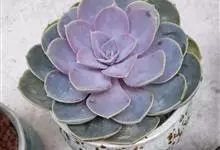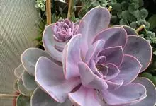 紫珍珠是景天科石莲花属的多年生肉质草本植物。植株中小型;叶片肉质,匙形,呈莲座状紧密排列;叶片粉紫色,叶缘呈粉白色,光照充足时颜色亮丽,不足时叶色会呈现深绿色或灰绿色,叶面光滑,被轻微白粉,…全部>>